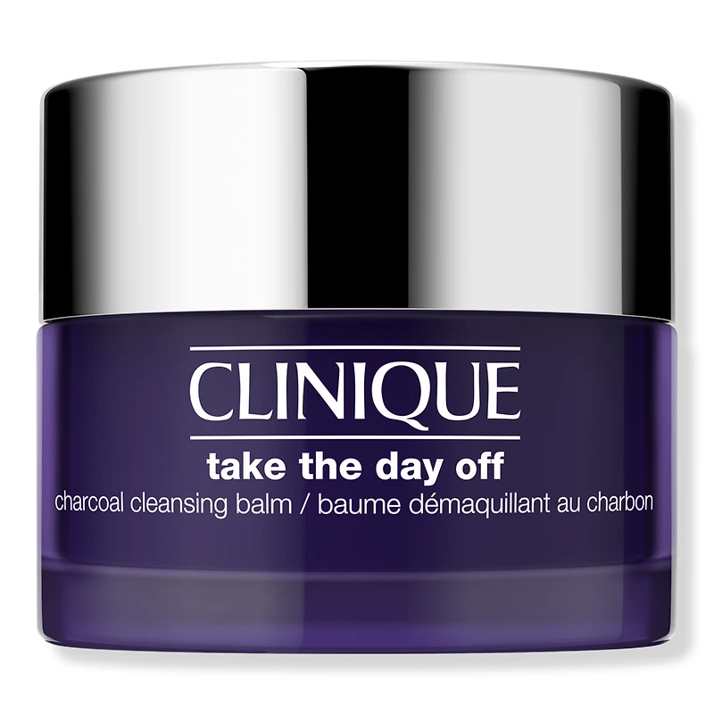 TAKE THE DAY OFF CHARCOAL BALM 0.07FLOZ. Benefits: Skin Types: Dry Combination, Combination Oily, Oily.. Clinique's #1 makeup remover, now with Japanese charcoal to detoxify and remove excess oil.. Unclogs pores, helping clear dirt, oil, pollution, and other impurities.. Quickly dissolves tenacious eye and face makeups, sunscreens.. Transforms from a solid balm into a silky oil upon application.. Rinses off completely - without leaving an oily residue behind.. Key Ingredients: Japanese charcoal: This purifying ingredient helps deeply cleanse and detoxifies pores.. Safflower seed oil: Works efficiently to help break up natural oil found on skin, plus dissolves hard-to-remove makeup.. Rich in linoleic acid, this natural emollient helps leave skin feeling soft and nourished.. Research Results: Over 95% removal of face makeup, sunscreen, and pollutants.*. *Average removal of longwearing foundation, hybrid sunscreen, and carbon powder..