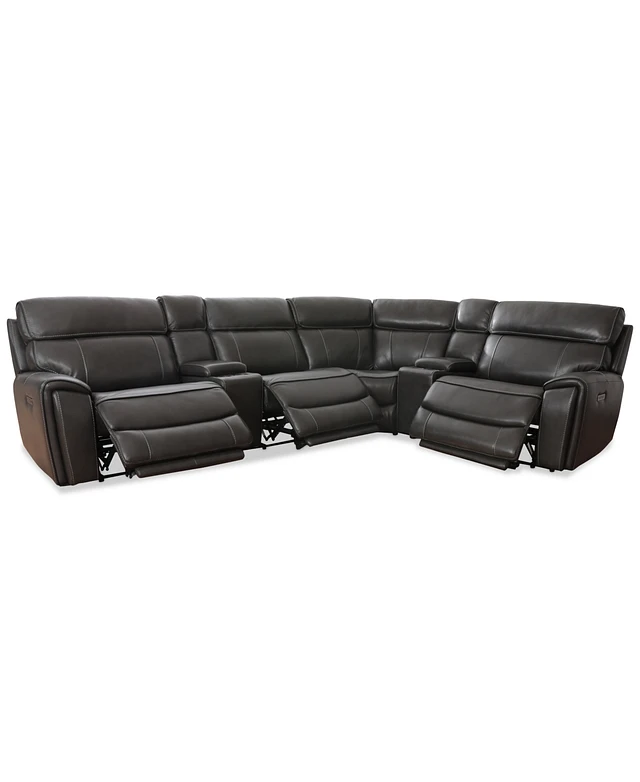 Closeout! Hutchenson 132.5" 6-Pc. Zero Gravity Leather Sectional with 3 Power Recliners and 2 Consoles, Created for Macy's
