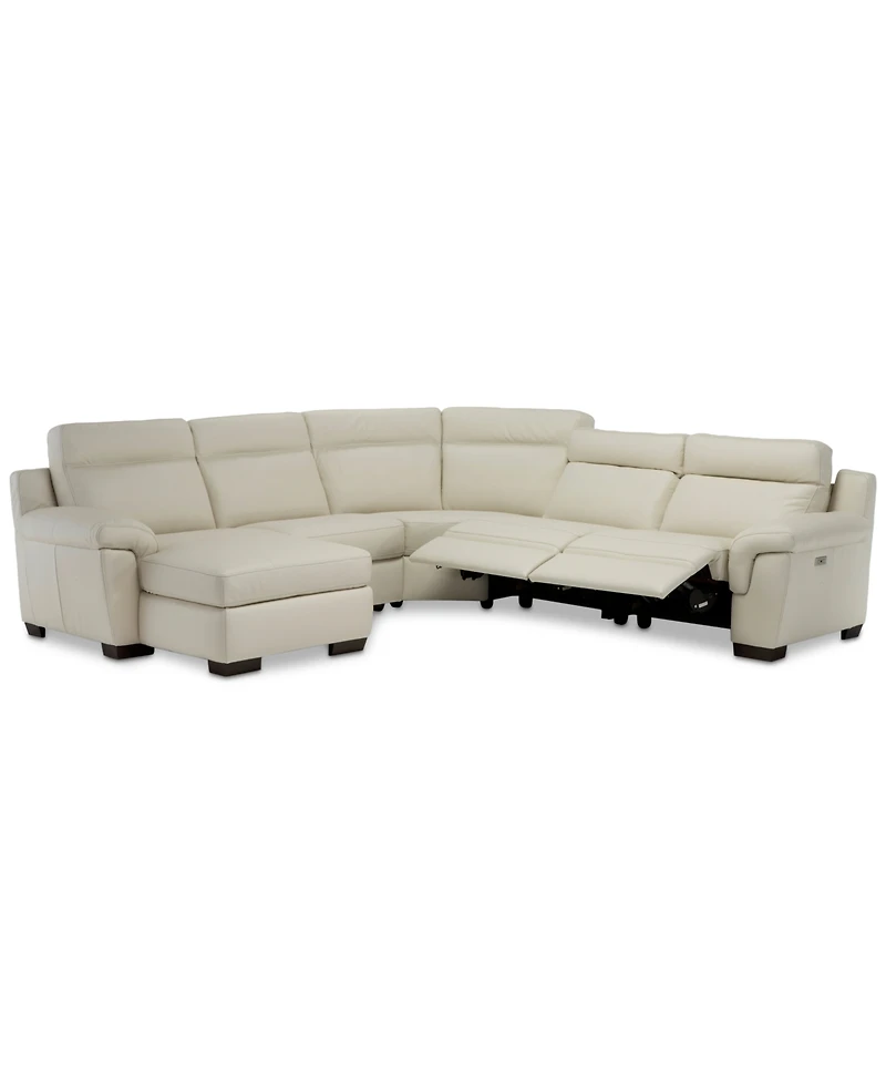 Closeout! Julius Ii 5-Pc. Leather Chaise Sectional Sofa With 2 Power Recliners, Power Headrests & Usb Power Outlet, Created for Macy's