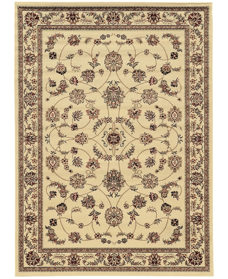 This timeless oriental scroll design is a traditional pattern updated with modern touches to suit any space. The ivory base is bordered by a floral border to complete this traditional design. Made of heat-set polypropylene, this rug provides a soft, non-shedding, durable, and easy to clean accent.