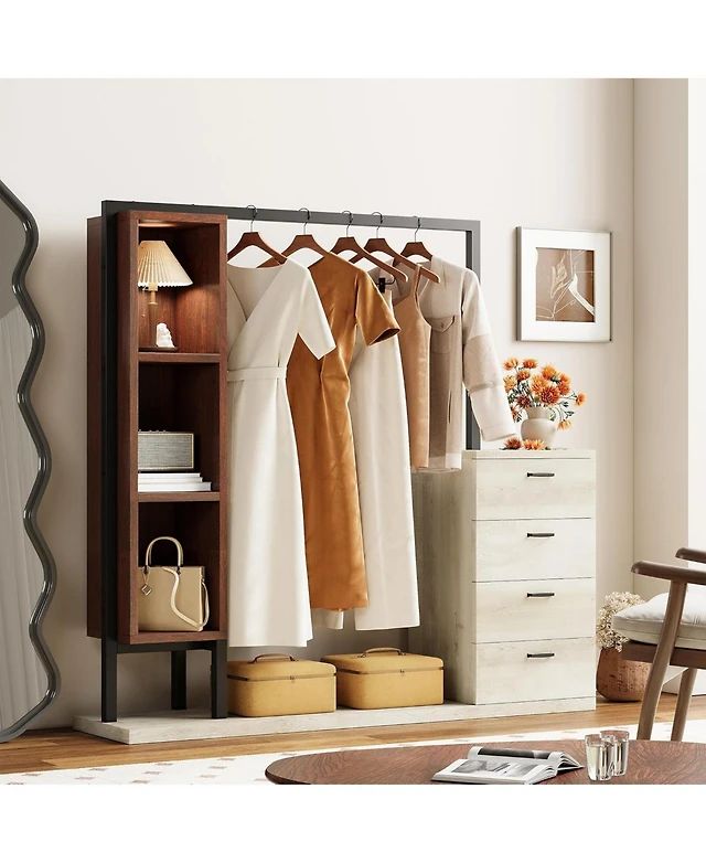 Yigii Reversible Hanging Clothes Rack with Drawers and Shelves