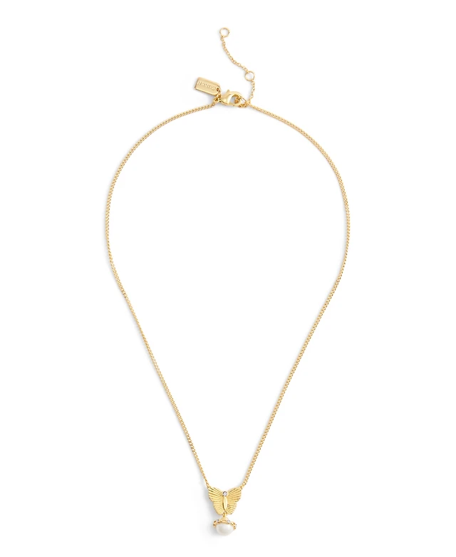 Coach Faux Stone Signature Heritage Butterfly Cultivated Pearl Pendant Necklace