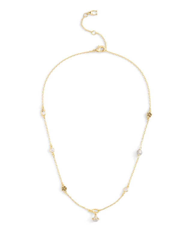 Coach Faux Cultivated Pearl Signature Heritage Collar Necklace