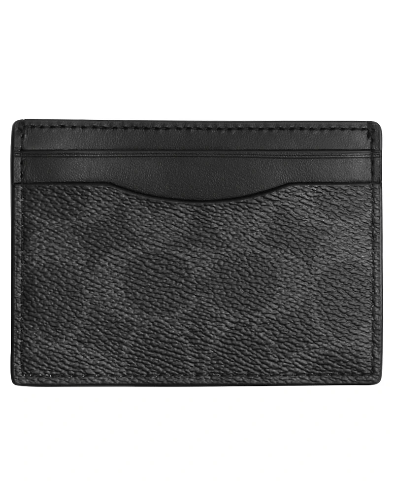 Combining signature coated canvas with refined calf leather, this card case from Coach includes three credit card slots and a slip pocket. The integrated money clip offers secure cash storage.