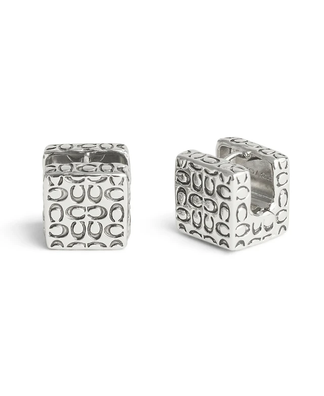 Coach Signature Quilted Cube Huggie Earrings