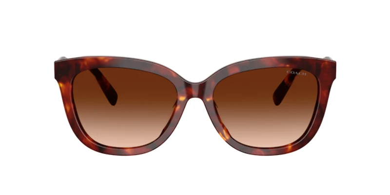 Elevate your everyday style with the coach hc8453u cdp53. These coach sunglasses feature square frames, crafted from durable plastic in a sophisticated tortoise hue, showcasing sharp angles for a structured, modern look. The rich acetate temples feature embedded metal detailing in shiny light gold, exuding luxurious new york elegance. Gradient brown lenses complete the design, providing advanced protection against uva/uvb rays.