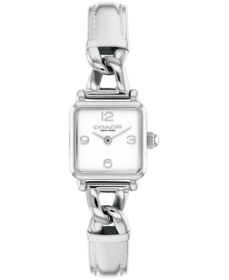 A bold square shape gives the Cass watch modern, distinctive style. Featuring a chain link bangle with a striking stitch motif reinterpreted from Coach handbags, this stainless steel timepiece has a silver white sunray dial and a crown cabochon. Sku 14504670
