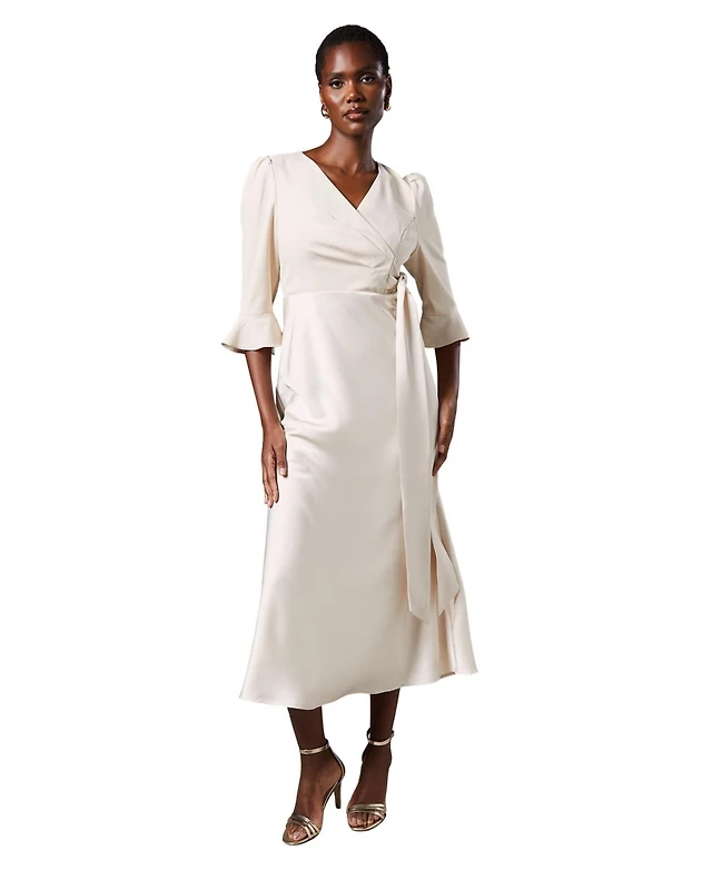 Coast Women's Ruffle Sleeve Satin Wrap Dress