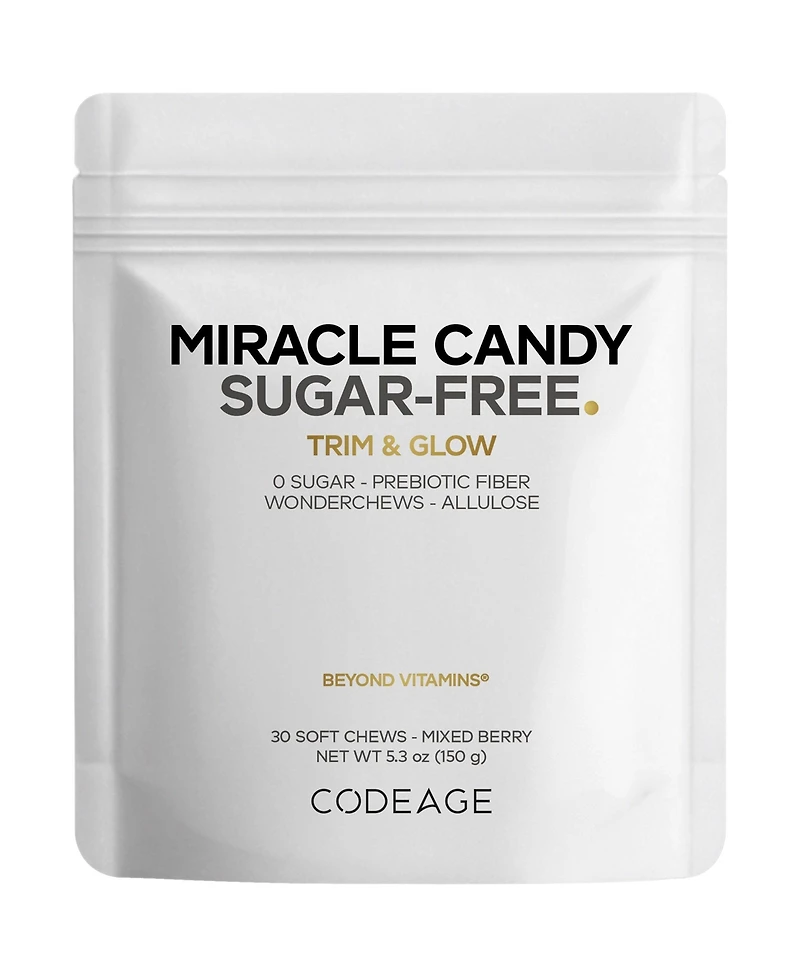 Codeage Miracle Candy Mixed Berry is a delicious sugar-free candy made with rare sugar allulose and prebiotic fiber from chicory root. These modern candies and soft chews feature an indulgent fruity berry flavor and 0g of sugar, providing a wonderful sugar-free and low-calorie candy option.