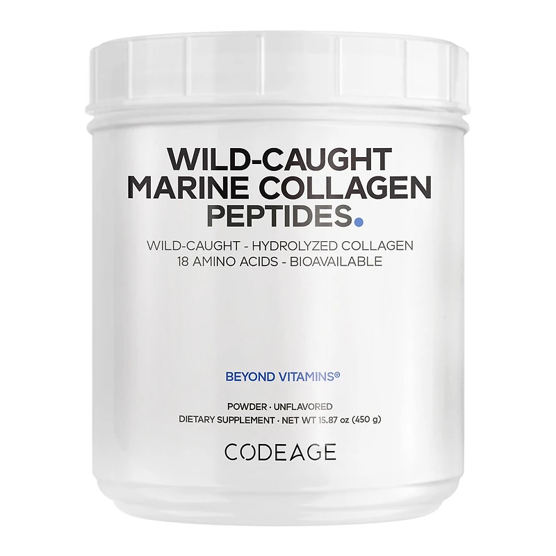 Codeage wild-caught marine collagen peptides - unflavored codeage wild-caught marine collagen powder supplement offers hydrolyzed collagen of types 1 & 3, sustainably sourced from north american ocean white fish. Packed with 18 amino acids, this pure fish collagen powder supplement provides a 50-day supply in each canister. This marine collagen powder is also ideal for those seeking a meatless collagen supplement. Codeage wild-caught marine collagen supplement is sustainably sourced from deep-ocean white fish in north american cold waters, providing a high concentration of type 1 & 3 collagen in a convenient powder format. This marine collagen powder supplement delivers 18 amino acids. This pure fish collagen supplement formula is uncompromising in its purity. This marine collagen peptides supplement is non-gmo, dairy-free, and gluten-free. This hydrolyzed fish collagen contains zero carbs, with no additives, preservatives, or sulfites, making it a clean and wholesome addition to your daily routine. This meatless collagen is also shellfish-free. Each container of this hydrolyzed collagen powder formula provides a generous 50-day supply designed to integrate into your busy life seamlessly; its versatility allows you to mix it into beverages, protein shakes, or your favorite recipes. Codeage wild-caught marine collagen powder is manufactured in the usa with global ingredients in a cgmp-certified facility for quality and purity. . Codeage wild-caught marine hydrolyzed collagen peptides powder type i and iii gluten-free - 15. 87 oz. (50 servings)