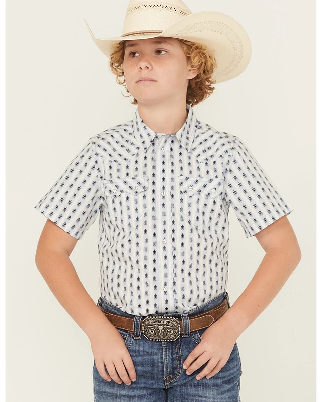 Cody James Boys' Cowboy Way Striped Print Short Sleeve Snap Western Shirt