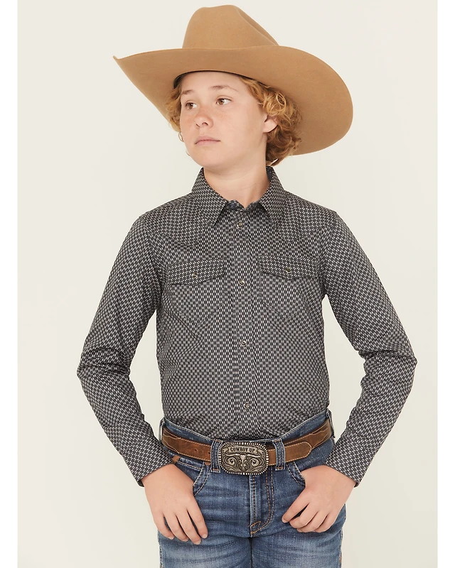 Cody James Boys' Prime Time Geo Print Long Sleeve Western Snap Shirt