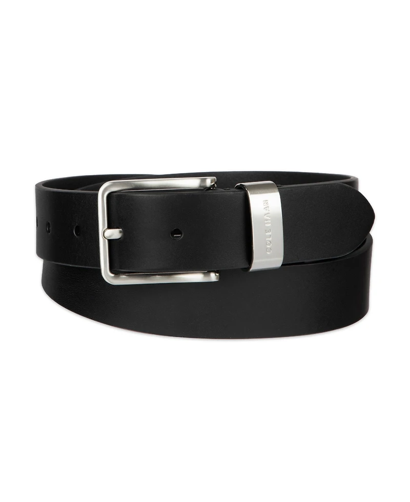 Elevate your everyday essentials with this sleek Cole Haan belt, refined by a modern metal loop and engraved logo detail. The square harness buckle adds a clean, contemporary finish.