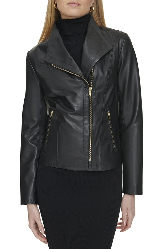 Cole Haan Women's Collarless Leather Jacket