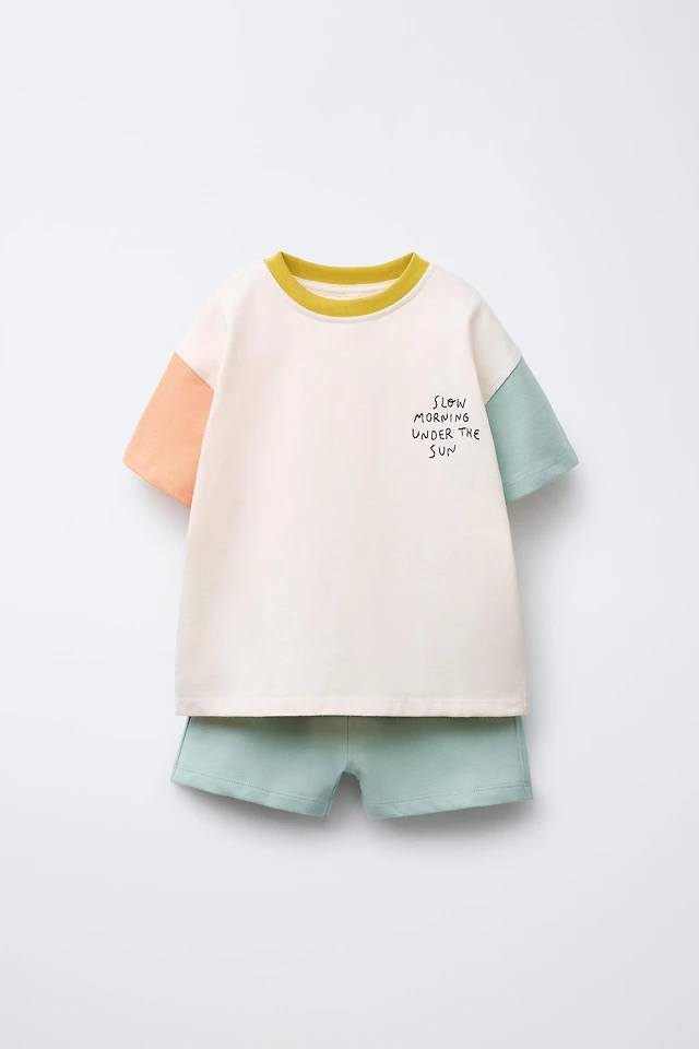 COLOR BLOCK JOGGING T-SHIRT AND BERMUDA SET