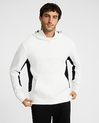 Cozy and utility combine in this sleek new hoodie. Featuring both a classic quarter zip and athletic inspired bungee drawstrings, this hoodie is perfect for layering up or dressing down. Complete with long sleeves, colorblock side panels, and a hoodie hand pocket.