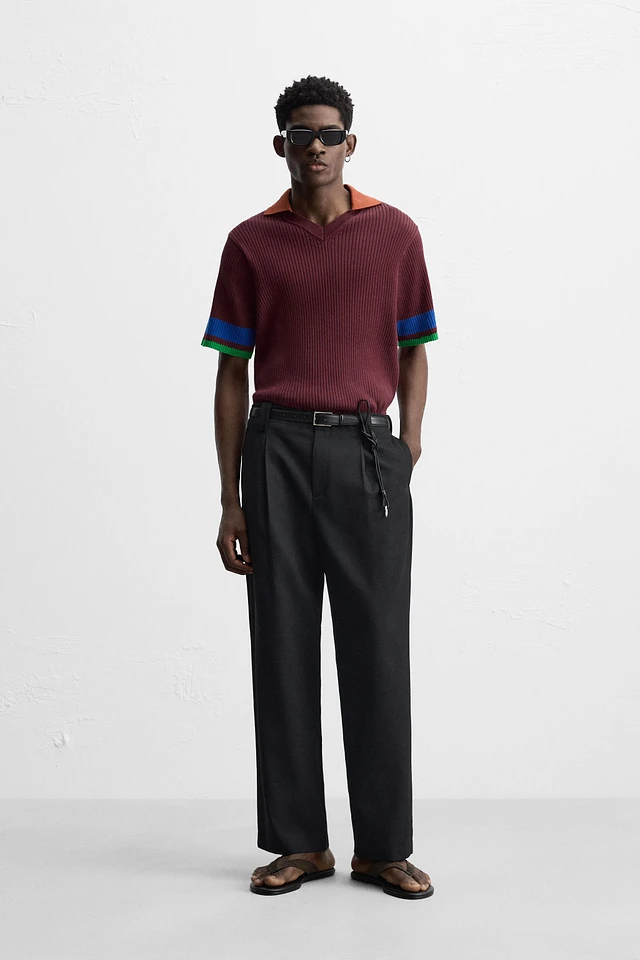 Ribbed knit polo shirt