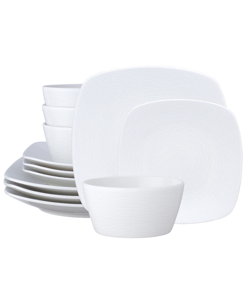 Colorscapes Swirl Square Set 12 Piece Dinnerware Set, Service For 4