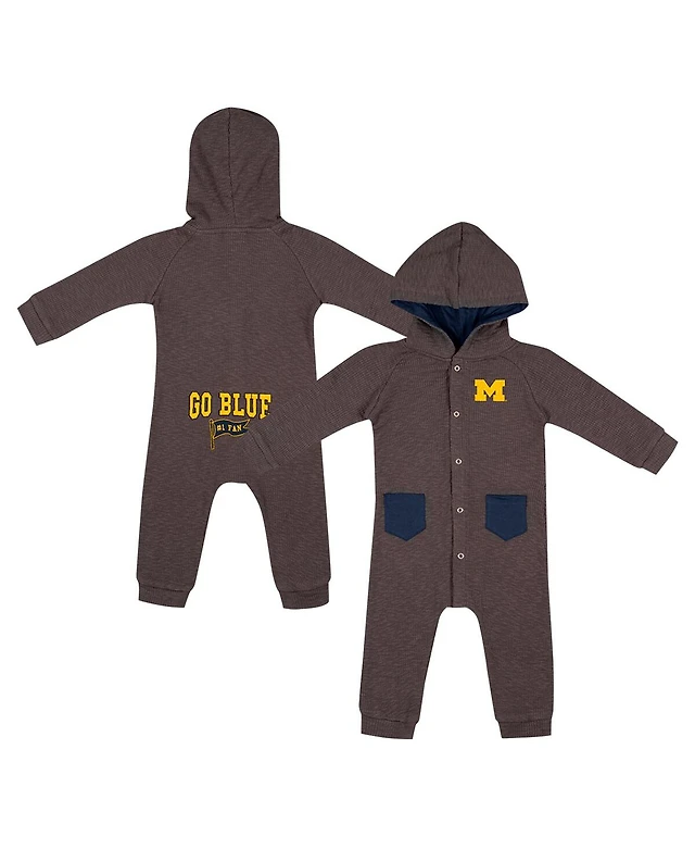 Colosseum Baby Boys and Girls Charcoal Michigan Wolverines Zando-Zan Waffle Full-Snap Hooded Romper