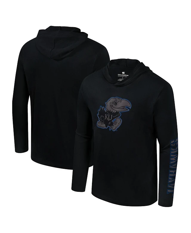 Colosseum Men's Black Kansas Jayhawks Color Pop Active Blend 2-Hit Long Sleeve Hooded T-Shirt