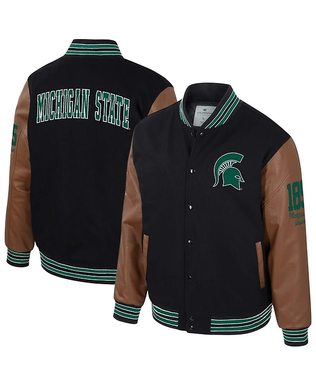 Colosseum Men's Black Michigan State Spartans Letterman Full-Snap Varsity Jacket
