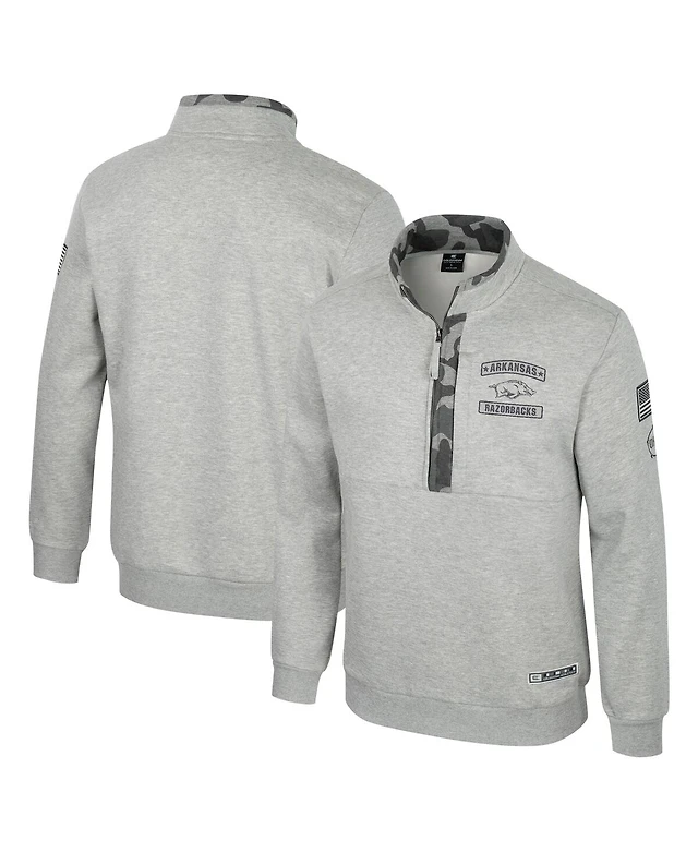 Colosseum Men's Heather Gray Arkansas Razorbacks Oorah Oht Military Appreciation Fleece Quarter-Zip Jacket
