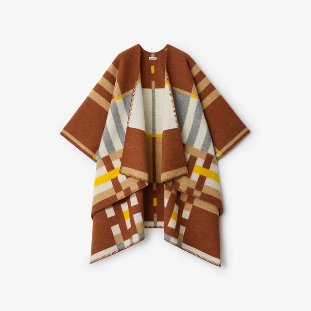 Colour Block Check Wool Cape in Cob | Burberry® Official