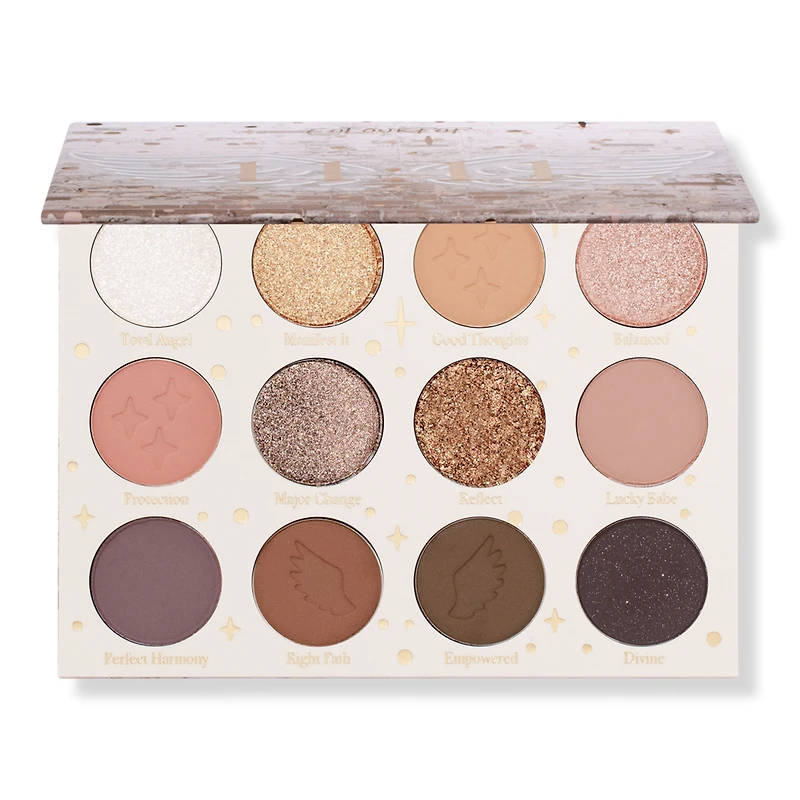 CP 11 11 PRESSED POWDER PALETTE 0.46OZ. Benefits: Highly pigmented. Super blendable. Applies evenly. Long-lasting. Shades: Top Row: Total Angel (metallic icy white), Manifest It (metallic soft gold with silvery pinpoints), Good Thoughts (matte camel), Balanced (metallic champagne taupe). Middle Row: Protection (matte pinky nude), Major Change (metallic taupe), Reflect (pearlescent glitter warm bronze with silver, gold & coppery glitter), Lucky Babe (matte soft taupe). Bottom Row: Perfect Harmony (matte plummy taupe), Right Path (matte warm brown), Empowered (matte true brown), Divine (matte sparkle rich blackened brown with silver pinpoints). :
