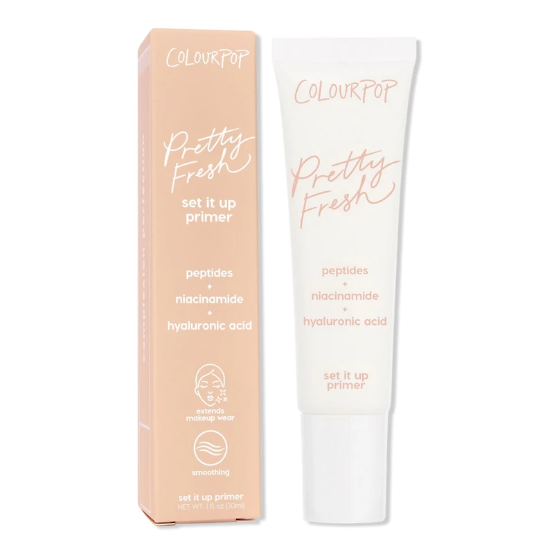 PRETTY FRESH SET IT UP PRIMER 1.0OZ. Benefits: Perfectly preps skin for makeup application. Smooths & blurs the look of pores. Instant shine control that lasts all day. Hydrates & nourishes skin. Feels comfy & lightweight. Translucent formula works on all skin tones. Airbrushed finish. Key Ingredients: Peptides nourishes skin to support a healthy barrier. Niacinamide smooths the look of skin. Hyaluronic acid deeply hydrates skin. Research Results: Shine was reduced by 48.6% immediately after application in 100% of participants*. 97% agree it created a smooth base for makeup application*. 97% agree it felt weightless on skin*. 94% agree skin felt more hydrated*. 94% agree skin looked less oily throughout the day*. 91% agree it instantly controlled shine*. *Based on an independent consumer study of 34 participants..