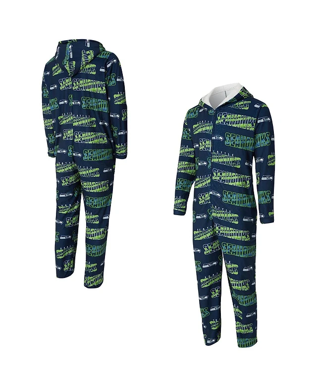 Concept Sport Men's College Navy Seattle Seahawks Shuffle All-Over-Print Microfleece Full-Zip Union Suit