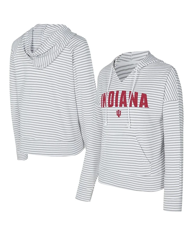 Concepts Sport Men's White/Gray Indiana Hoosiers French Terry Striped V-Neck Pullover Hoodie