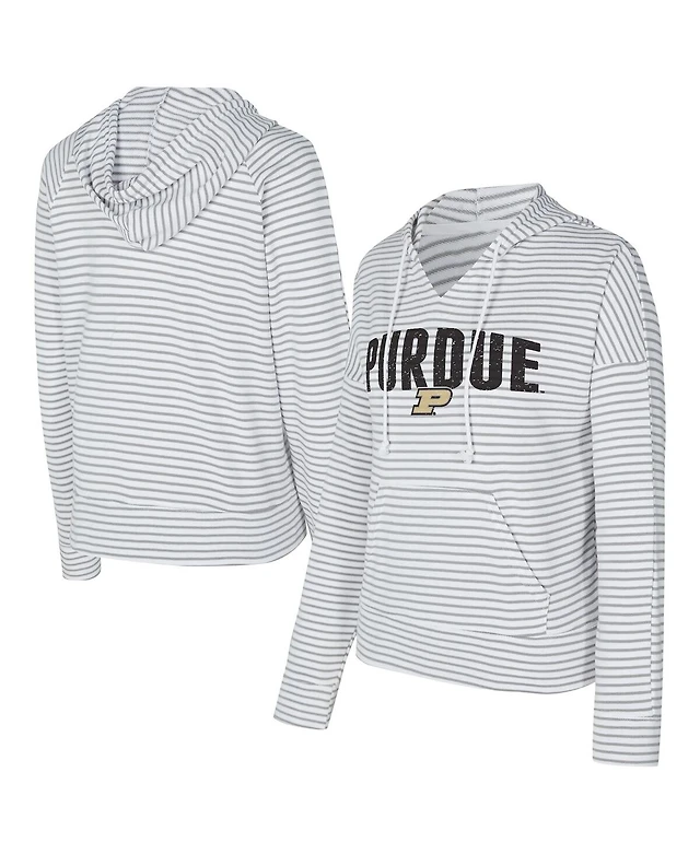 Concepts Sport Men's White/Gray Purdue Boilermakers French Terry Striped V-Neck Pullover Hoodie