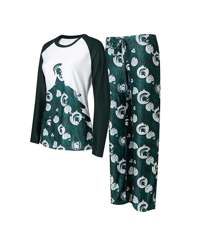 Concepts Sport Women's 2-Piece Hunter Green Michigan State Spartans Tinsel Ugly Sweater Long Sleeve Top and Pants Sleep Set