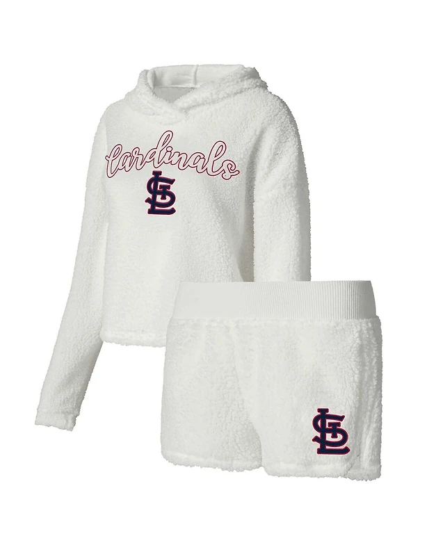 Concepts Sport Women's Cream St. Louis Cardinals Fluffy Hoodie Top Shorts Sleep Set