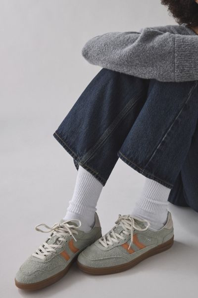 In soft suede, the Coolway Thai sneakers have a retro sneakers aesthetic inspired by indoor soccer shoes. Suede sneakers with a padded footbed complete with gel inserts for comfort.