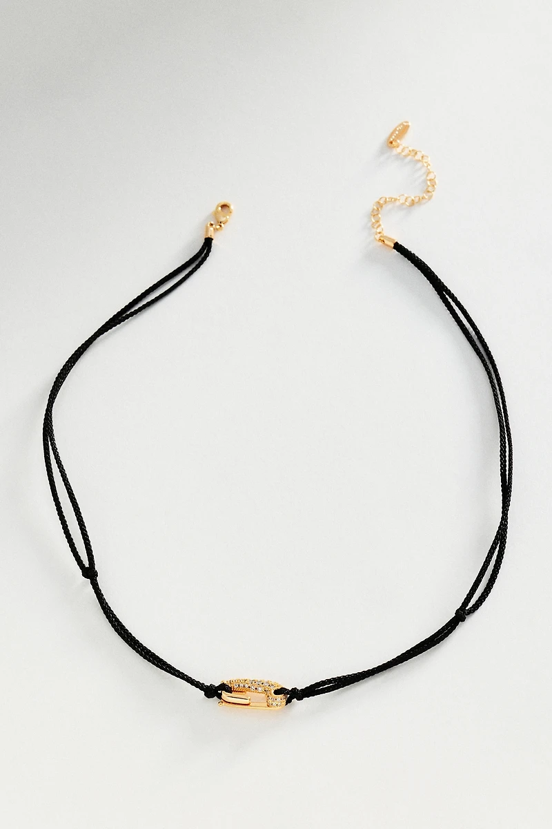 - 14k gold-plated brass, cubic zirconia, polyester cord