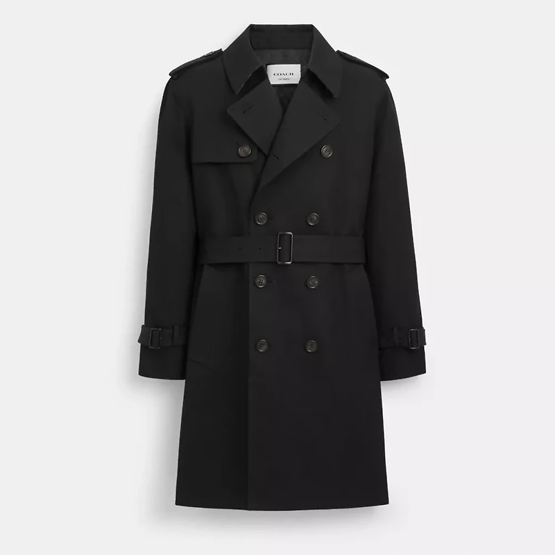 The Core Trench works well for commuting and casual plans. Crafted of a cotton blend with leather details, this trench coat features convenient slip pockets and an adjustable waist belt for a secure fit.