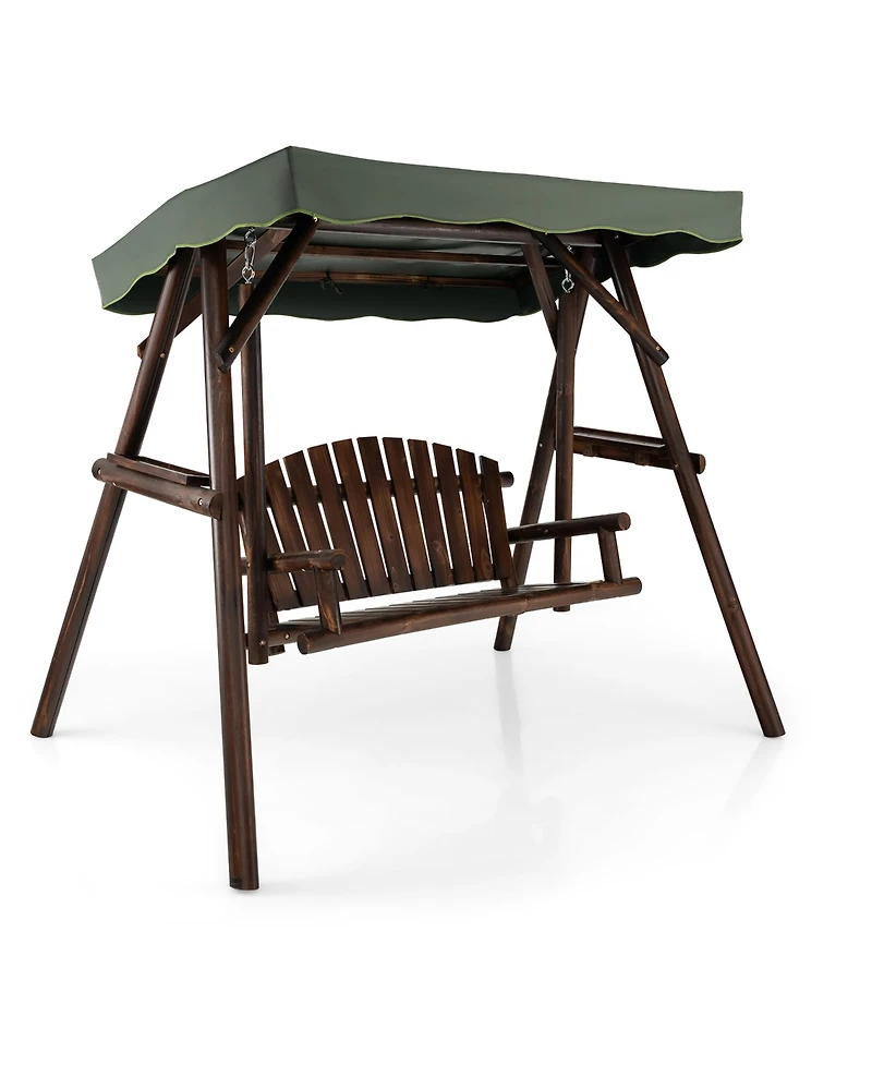 Costway 2 Person Wooden Garden Swing Bench Chair w/ Adjustable Canopy for Garden Porch