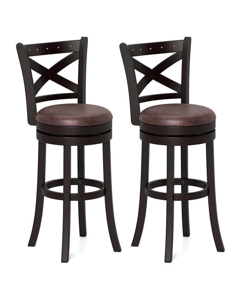 Costway 29" Swivel Bar Stools Footrest & Rubber Wood Frame for Kitchen Island