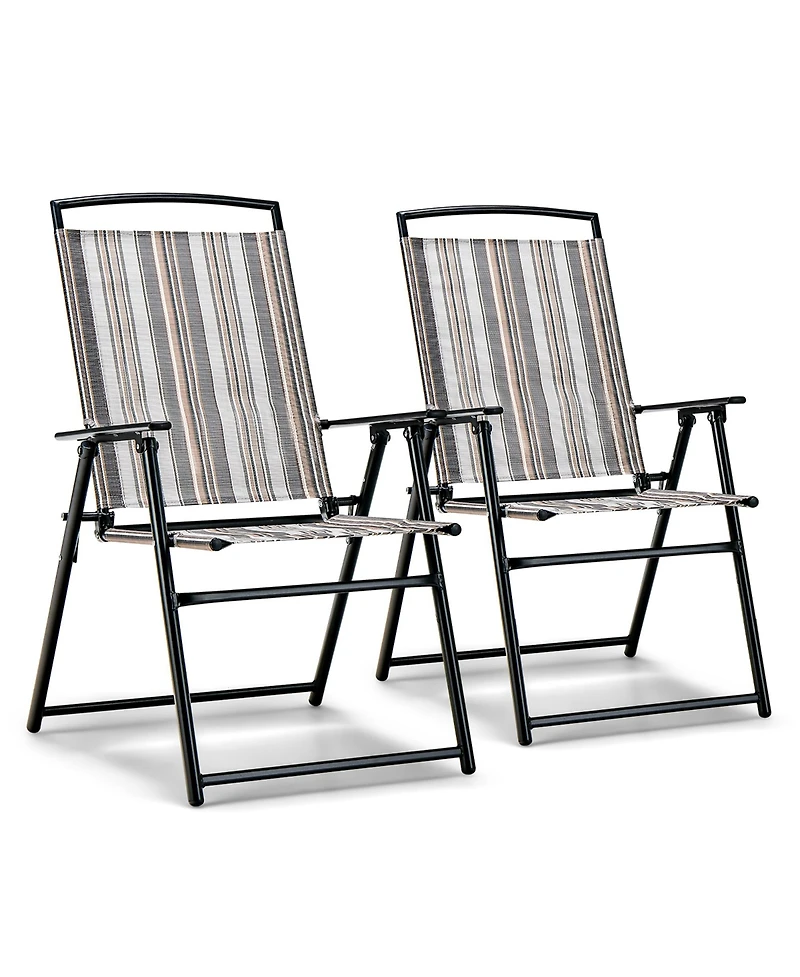 Costway 2pcs Patio Folding Sling Chairs Dining Armrest Backrest Outdoor Portable
