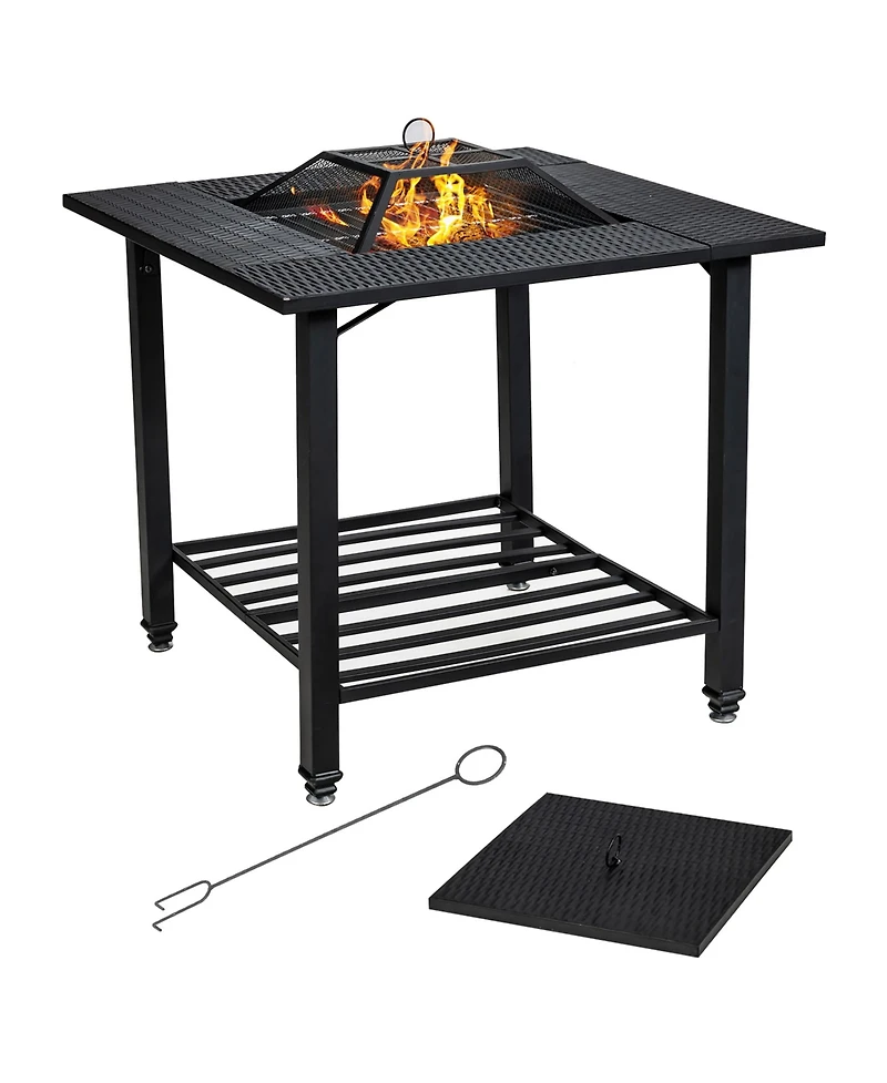 Our 31'' square wood burning fire pit with a simple style can match any outdoor living space decoration. Just enjoy your outdoor leisure time with this outdoor fire pit dining table! The sturdy steel frame with powder-coated surface ensures longer service time.