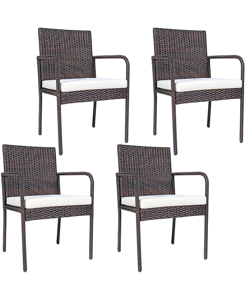 Costway 4 Pcs Outdoor Patio Rattan Dining Chairs Cushioned Sofa
