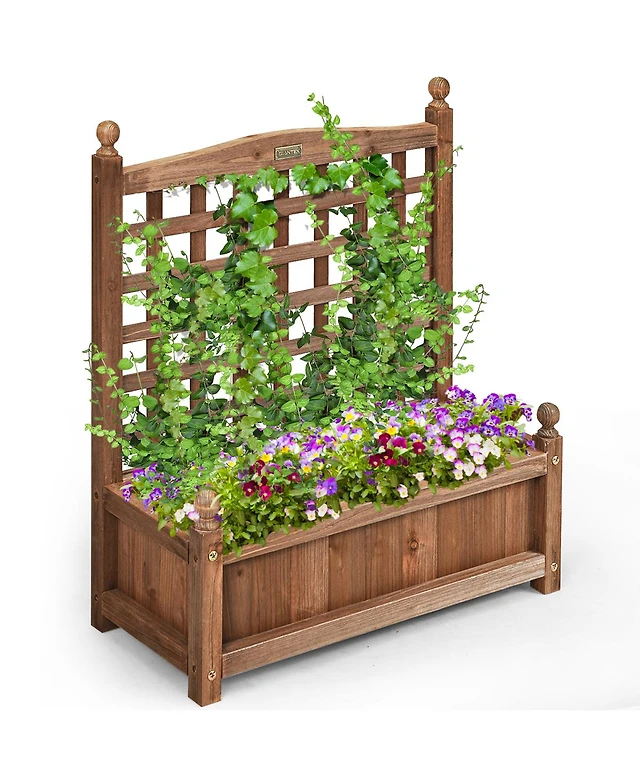 Costway Solid Wood Planter Box with Trellis Weather-Resistant Outdoor