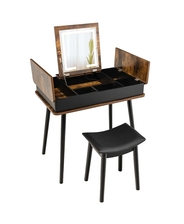 Touch Screen Vanity Makeup Table Stool Set with Lighted Mirror