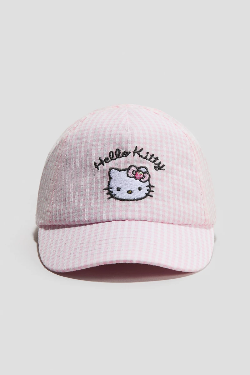 Cap in cotton twill. Motif at front, a sweatband, and elastic at back.