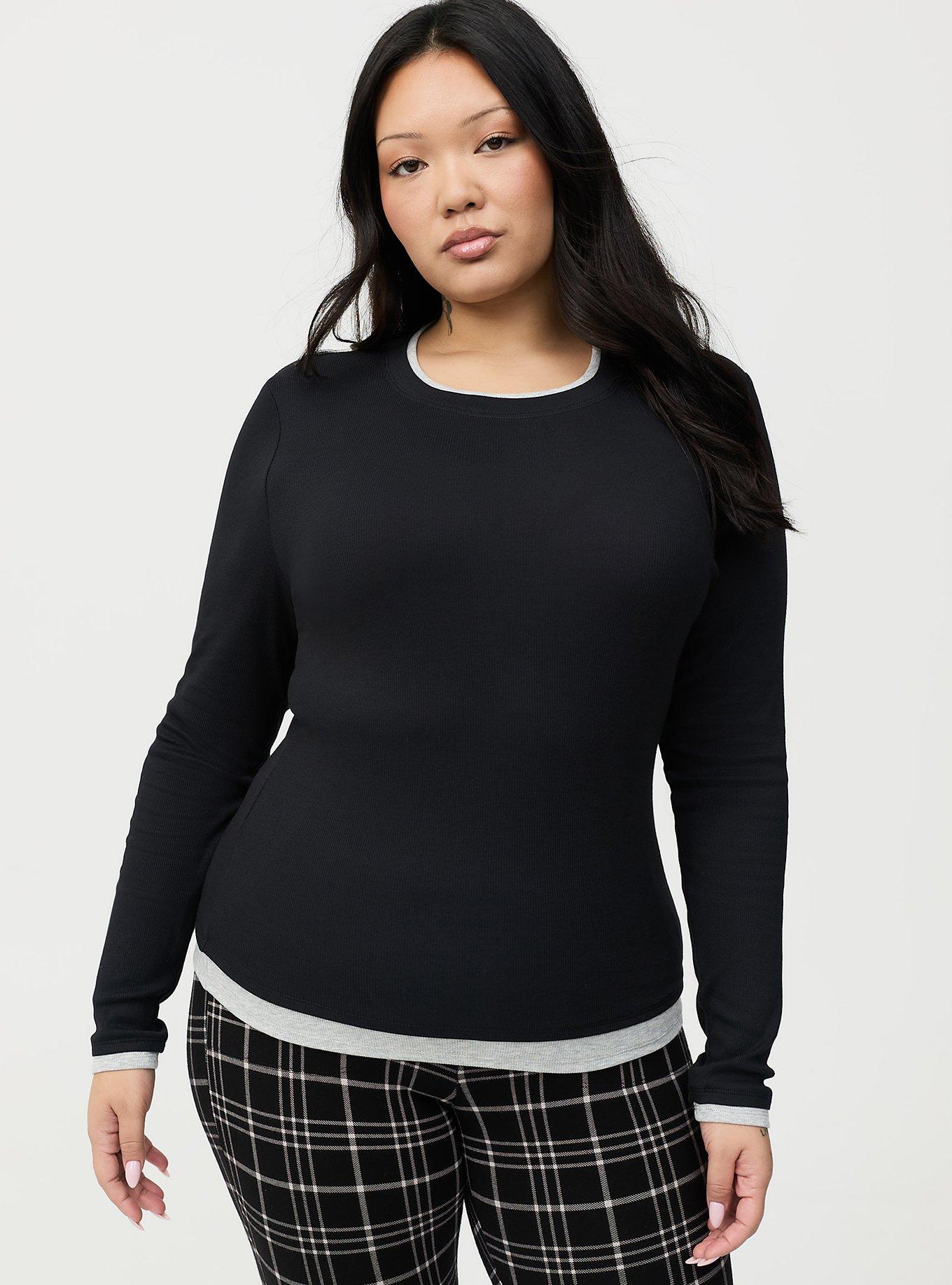 Cotton Modal Rib 2fer Layering Long Sleeve Tee