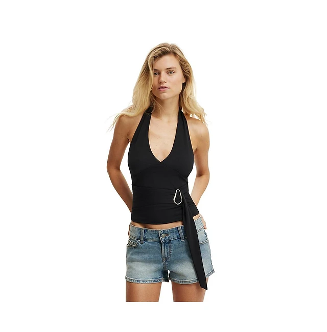 Cotton On Women's Buckle Belt Tie Halter Top