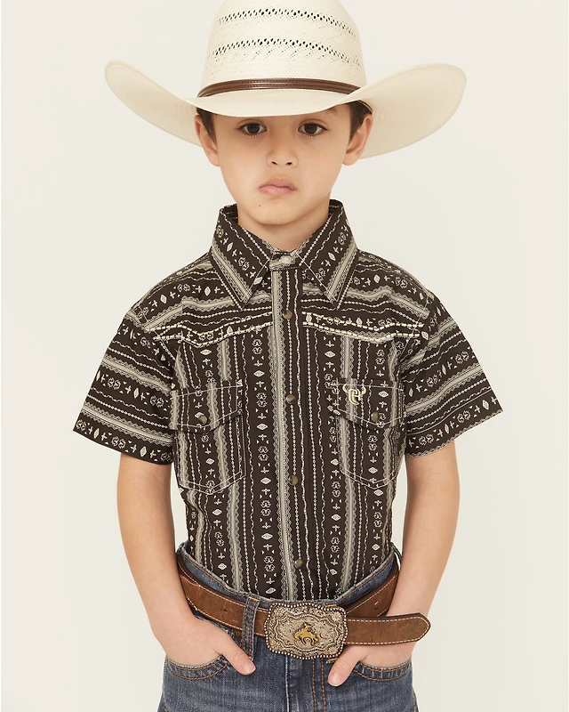 Cowboy Hardware Boys' Bronc Print Short Sleeve Snap Stretch Western Shirt