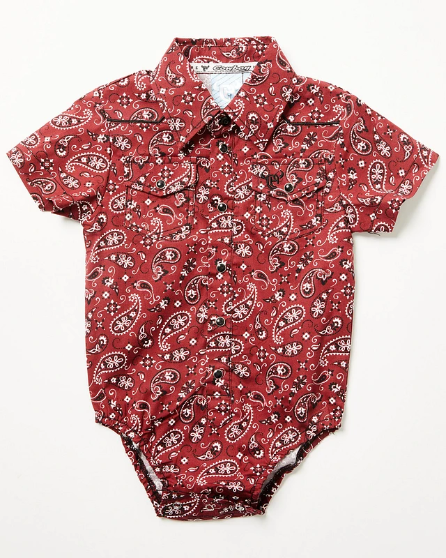 Cowboy Hardware Infant Boys' Bandana Paisley Print Short Sleeve Snap Onesie
