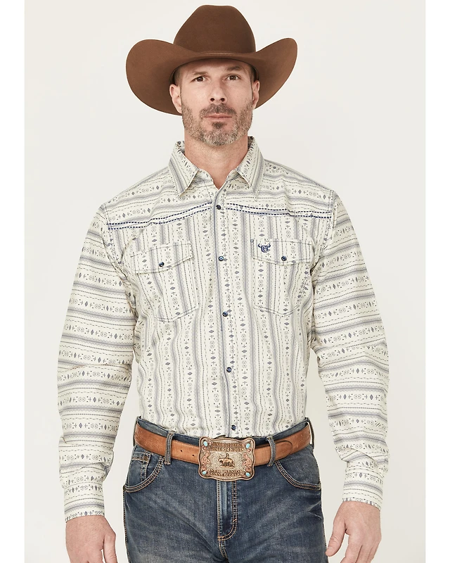Cowboy Hardware Men's Southwestern Striped Print Long Sleeve Snap Stretch Western Shirt